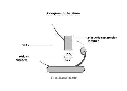 On peut avoir recours à la compression localisée, aussi appelée compression conique, pour obtenir des images plus précises d’une région du sein lors de la mammographie diagnostique.