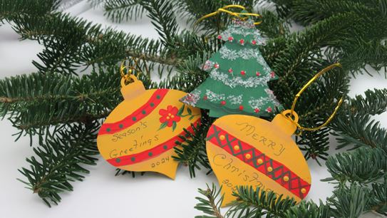 Handmade tree decorations expressing gratitude from people who have stayed at the Sobey Cancer Support Centre lodge in Halifax