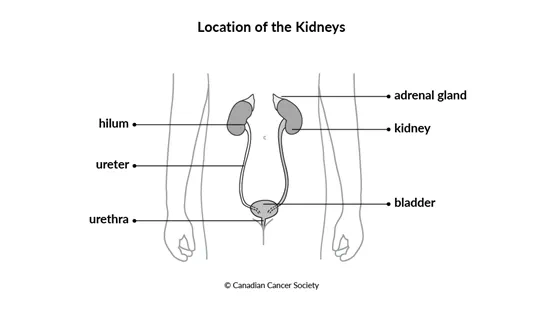 the bladder to the outside of the body. There is an adrenal gland just above each