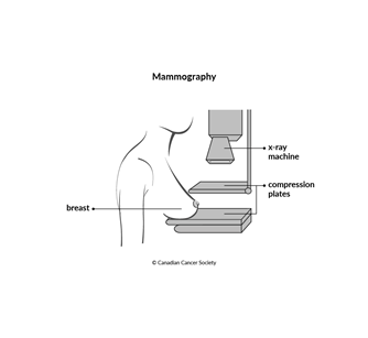 Mammography is an x-ray of the breast that uses low doses of radiation. The picture made during mammography is called a mammogram. It can help find both cancerous (malignant) and non-cancerous (benign) tumours in the breast.
