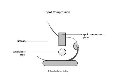 Spot compression (also called cone compression) may be used to get a closer view of one area of the breast during diagnostic mammography.