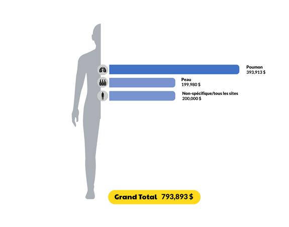 Le décompte inclut les subventions qui s'adressent spécifiquement aux populations défavorisées. Plusieurs populations défavorisées peuvent prétendre à une même demande individuelle. La catégorie « Autres » comprend, sans s'y limiter, les personnes exposées à des substances cancérigènes sur leur lieu de travail.
